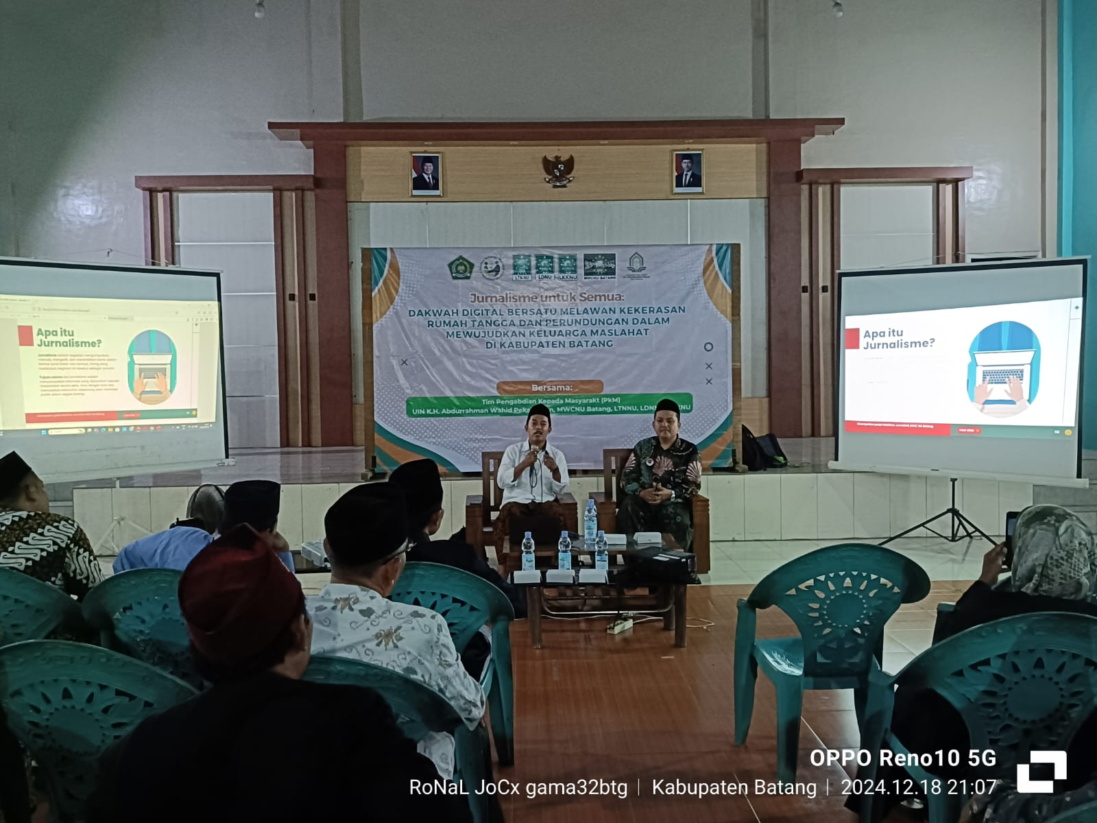 Hadir dalam kegiatan ini, tim PkM Dr. Ali Muhtarom, M.H.I, Khafid Abadi, M.H.I, Qurrata A’yun, M.H., jajaran Tanfidziyah dan Syuriyah, LTNNU, LDNNU, Ansor, Fatayat dan kader Jurnalis serta kader Dai Daiyah an-Nahdliyah Batang.