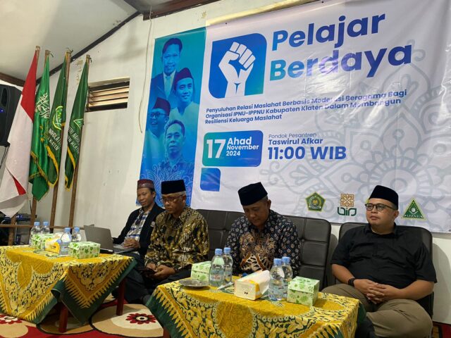 Klaten – Pondok Pesantren Taswirul Afkar, Mbulan, Wonosari, Klaten, menjadi saksi pelaksanaan kegiatan penyuluhan bertajuk Relasi Maslahat Berbasis Moderasi Beragama yang diselenggarakan oleh IPNU-IPPNU Kabupaten Klaten bekerjasama dengan Tim PKM Prodi Ikom UIN Sunan Kalijaga, Ahad (17/11/24). Kegiatan ini bertujuan untuk membangun resiliensi keluarga maslahat melalui penguatan nilai-nilai moderasi beragama, terutama di kalangan pelajar.