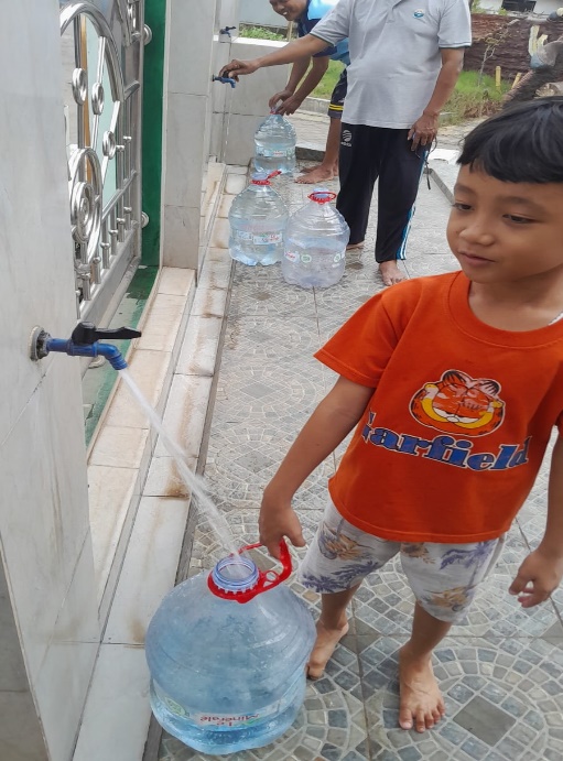 Sementara itu, anak-anak dan orang dewasa harus mengangkut air dengan jerigen di bawah terik matahari. Mereka harus mengangsu air di masjid, para pedagang kecil tidak bisa berjualan dan harus meluangkan waktunya. Situasi ini menggambarkan betapa sulitnya kehidupan warga yang bergantung pada sumber air bersih yang kian terbatas.